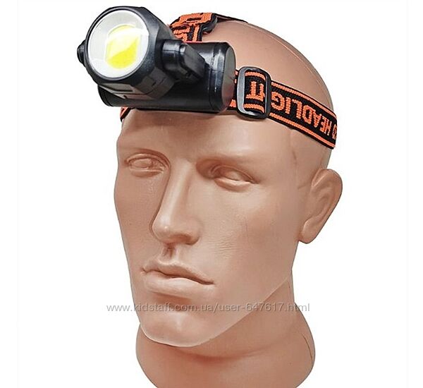 Этот фонарик налобный удобен виспользовании, его не нужно держать в руках, а достаточно одеть на голову и