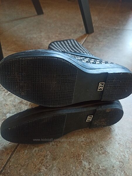 Купила и почти не носила. Размер 36/37. Идеально на ногу 23 см. У меня 23,5 и узкая нога, налазили отлично (они немного тянутся).Состояние отличное, почти не ношены. По верхнему краю стёрся кантик верхний.