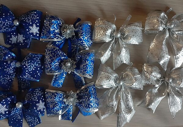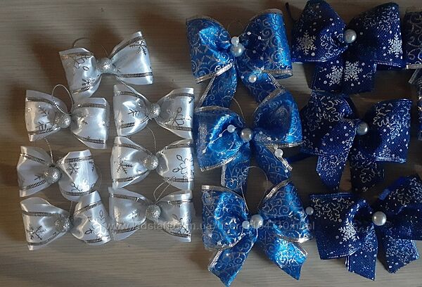 Продам новорічні бантики на ялинку :1. Білі - 8 см - тримають обєм - 15 грн / 1шт. Наявності - 12 шт