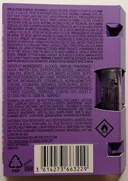 Об´єм парфуму: 1,2 мл Концентрація: парфумована вода Виробник: Viktor&Rolf