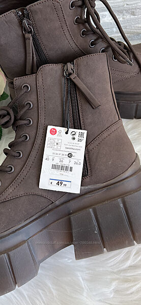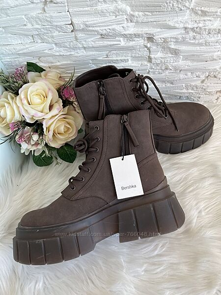 Стильные высокие деми ботинки со шнуровкой популярного бренда Bershka, размер 40 на ножку 26 см.Цвет коричневый, матовый, внутренняя часть - текстиль. Выполнены из эко нубука, подошва высокая, рельефная, нескользящая. Идут без коробкиДругие объявления продавца