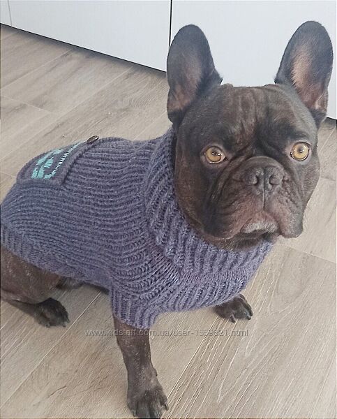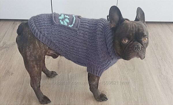 Ручна робота, склад напіввовна. Розмір підходить на окружність шиї 50-55 см, обєм грудної клітки 60-65 см, довжина 40 см,+ 8 см, комір. Комір з шнурком ( щоб светр не сповзав), також є невелика кишеня, довжина по низу ( живіт) 25 см+ 8 см, горловина.