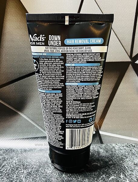 Будь ласка, зверніть увагу, що важливо зробити патч-тест на невеликій частині статевих органів. Якщо побічної реакції немає, крем для видалення волосся Nad’s For Men Down Under Hair Removal Cream можна застосовувати далі.