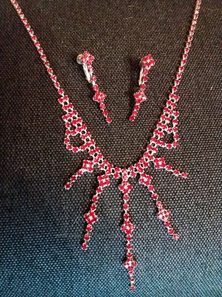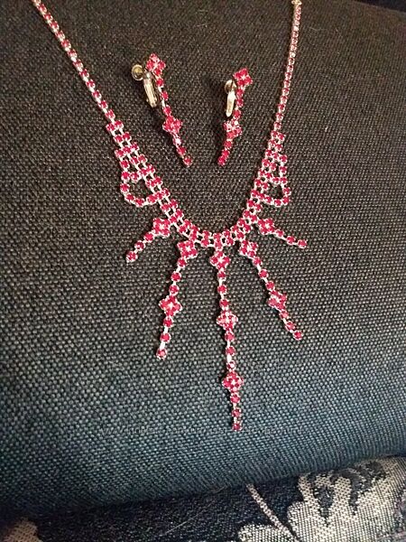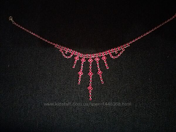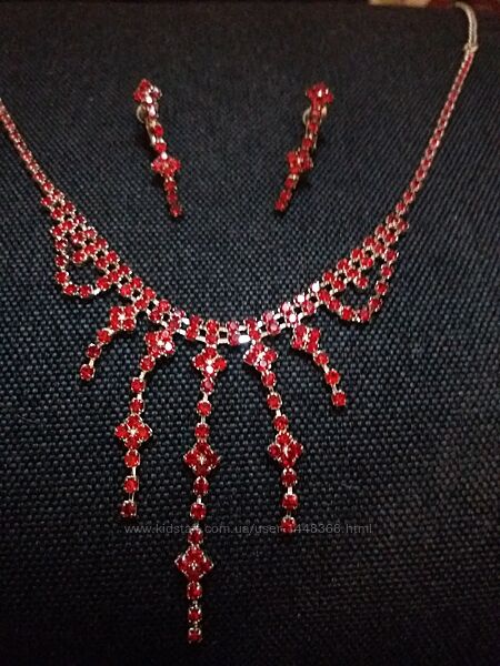 Бижутерия - набор: колье серьги.Камушки Сваровски. Очень красиво переливаются. Камни ярко красного цвета. Застёжка - карабин. Держит хорошо. Без дефектов. Куплено в магазине.