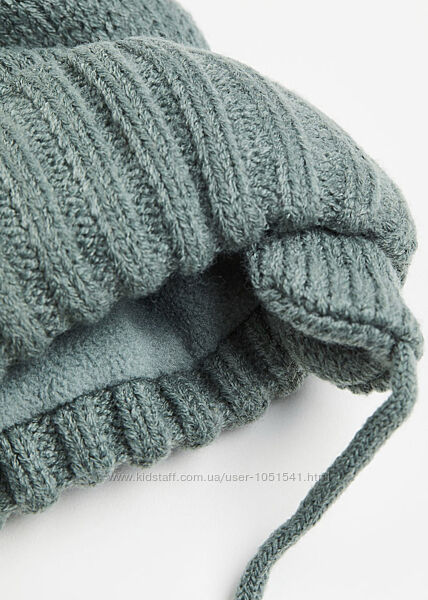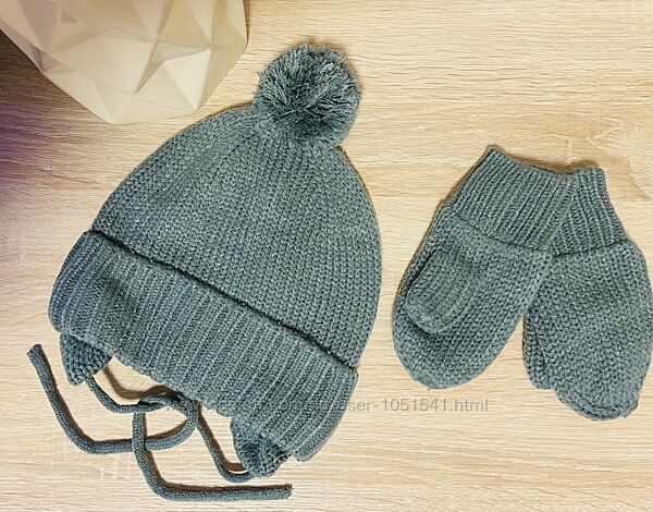 Теплий зимовий комплект шапка і варежки від H&M модель зима( еврозима) ,колір - зелений .РІСТ 74-80 см( на 6-12 міс висота-17 об,єм-21 , варежки-15 см) 86-92 см- ( на 1-2 роки висота-22 об,єм-21 см , варежки-16 см)