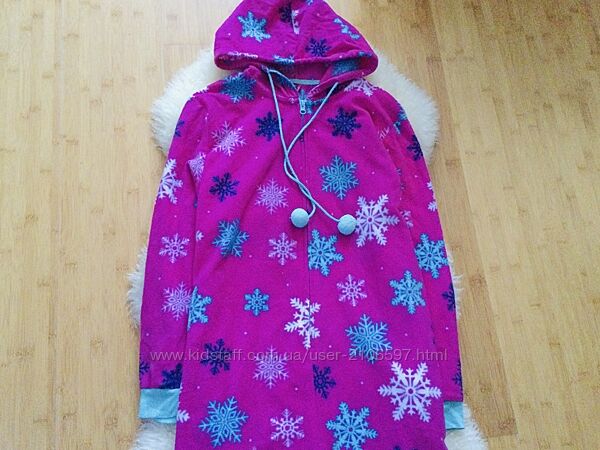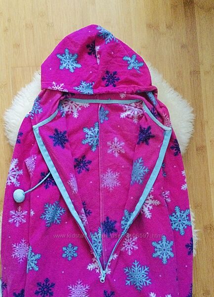 Флисовая Пижама S-M-L Домашний комплект. Кигуруми. зимний принт в снежинки. на манжетах с капюшоном, застежка на молнии. состояние отличноеДлина 152; подмышки 52; рукав от ворота 70; шаговый 75
