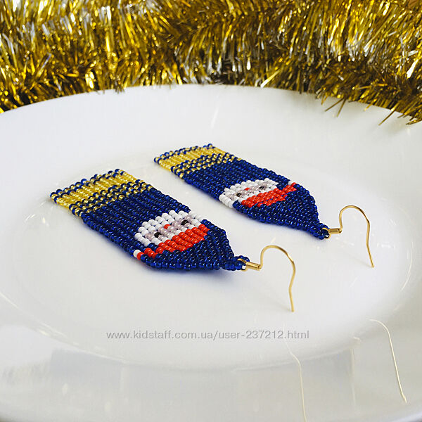 Яскраві сережки з бісеру з авторським новорічним візерунком. Така прикраса стане родзинкою будь-якого святкового образу.Довжина сережок - 9 см