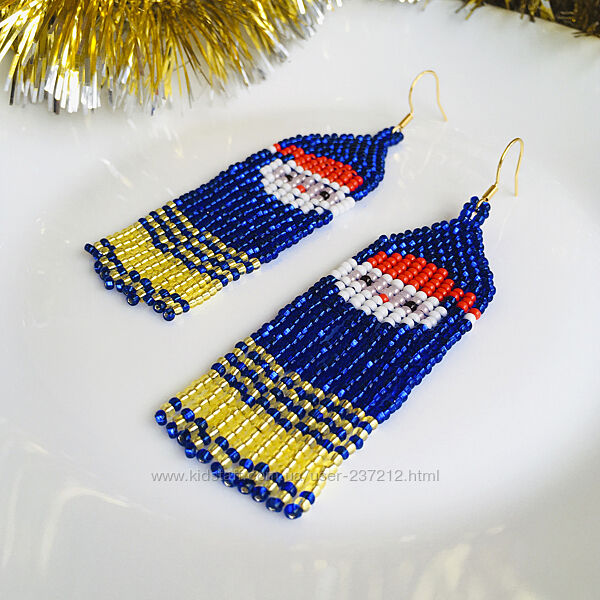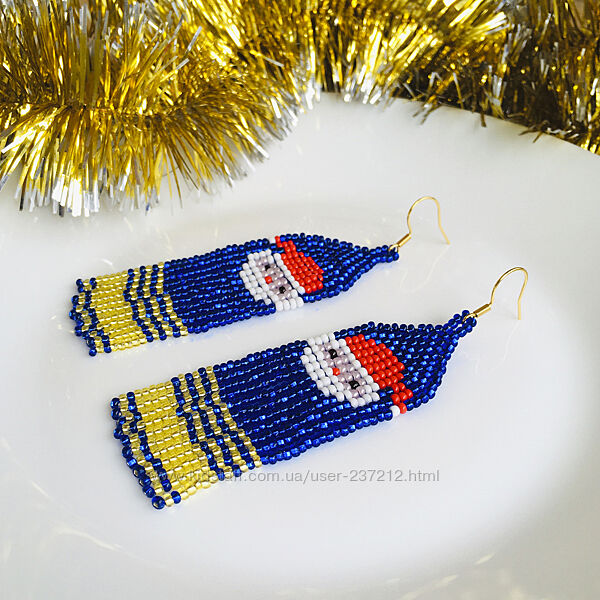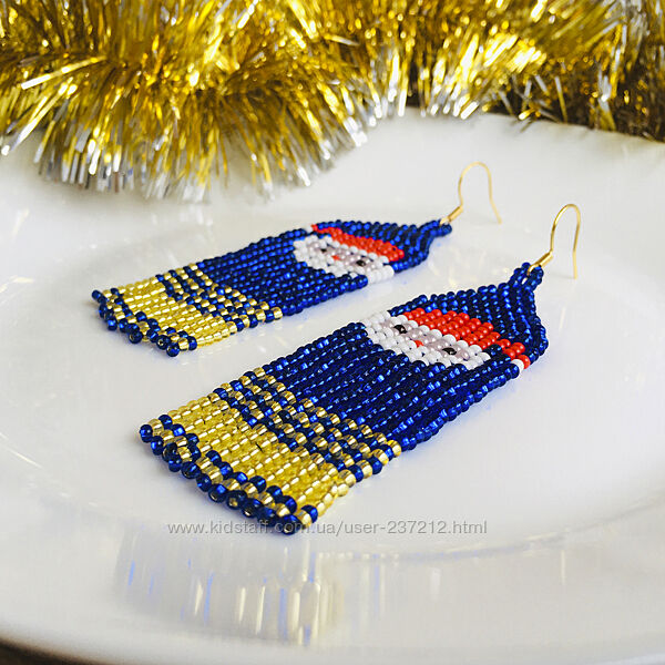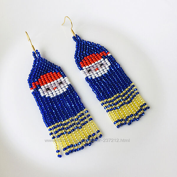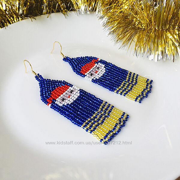 Подробное описание: Новорічні сережки з бісеру, святкові бісерні сережки Санта Клаус
