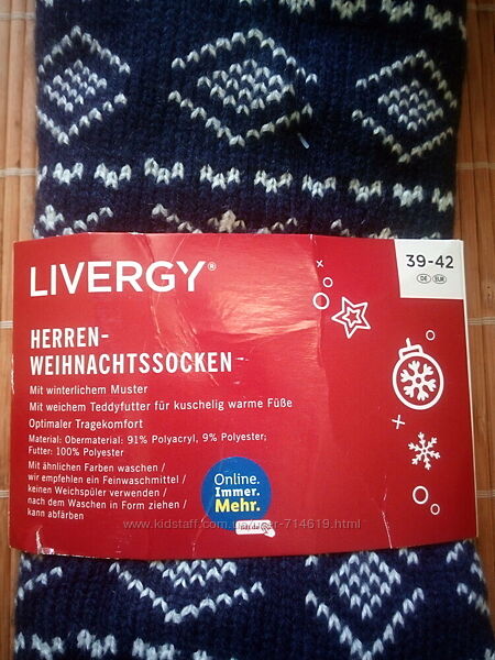 Подробное описание: Мужские теплые носки-тапочки внутри мех LIVERGY Германия