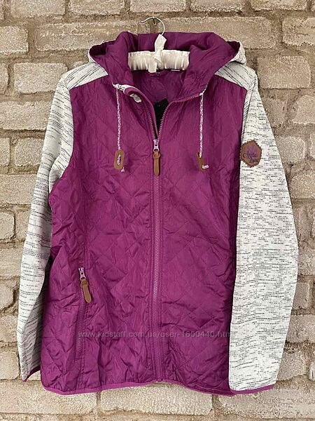 Функциональная женская курточка, утепленная ветровка софтшелл Crivit Sports Размер L ( 44/46)Функциональная женская куртка от немецкой фирмы Crivit Sports выполнена в современном норвежском стиле. Ветрозащитная и утепленная идеально подходит для активного отдыха в весенне- осенний период. Застежка- молния с охраной подбородка. Капюшон в ширину регулируется шнурком. Рукава и подол куртки на резинках. Куртка и капюшон имеют внутри подкладку из тафты. Два боковых кармана на молниях. Цвет: средний серый меланж / ягода. Материал: верх, утеплитель и подкладка 100 % полиэстер, мембрана – 100% полиуретан. Размер: L ( 44/46) – европейский. Ориентируйтесь на замеры