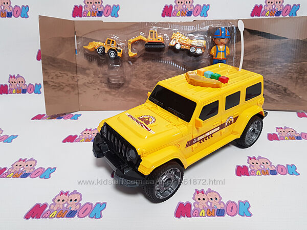 Машина-гараж Поліцейська припаде до смаку всім любителям крутих позашляхових джипів з родзинкою!Джип поєднав в собі витончений дизайн і небезпечну спрагу швидкості. Тоновані вікна, потужний передній бампер і високий кліренс.
