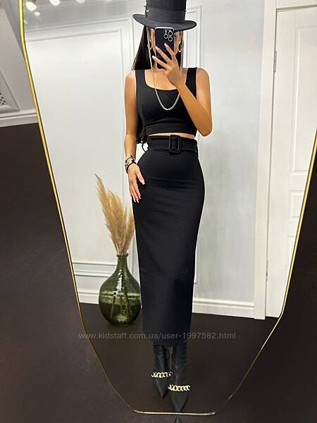 Топ та спідниця, топ без застібки, спідниця на потайній змійці, пояс у комплекті з пластиковою пряжкою