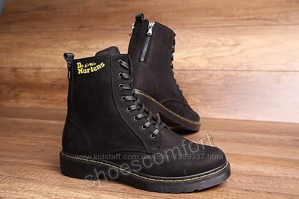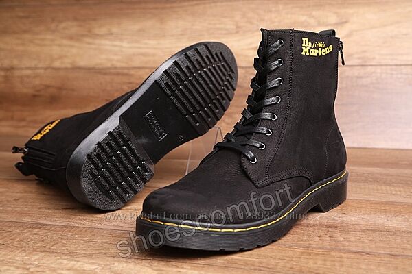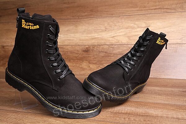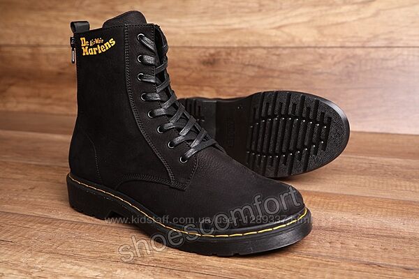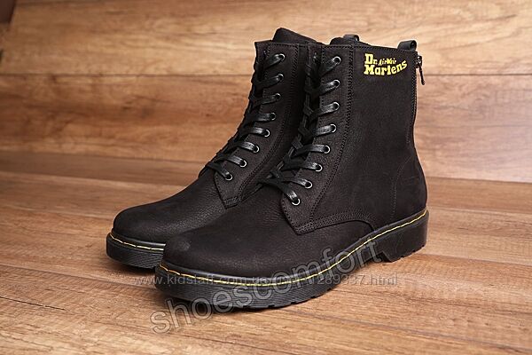Подробное описание: Кожаные зимние ботинки, берцы, сапоги в стиле Dr. Martens черные