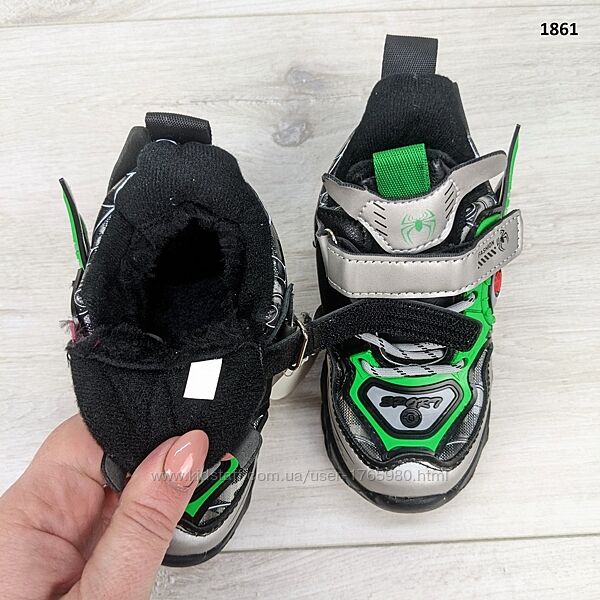 Подробное описание: Ботинки зимние для мальчика на меху серые с зеленым Мифер