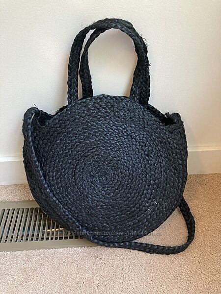 Подробное описание: Круглая соломенная джутовая черная сумка-тоут с вышивкой Forever 21