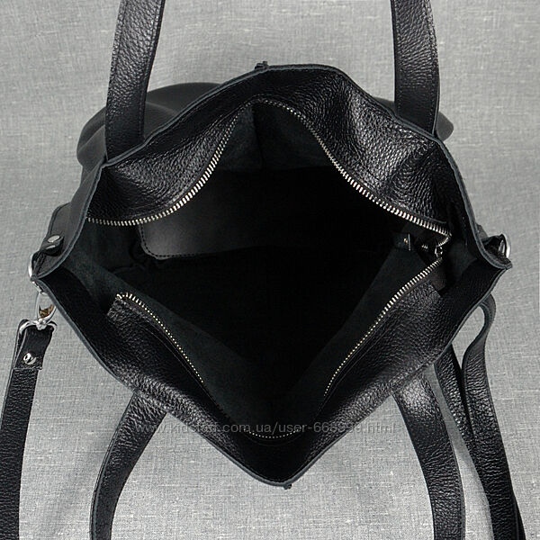• Недолік кишень усередині сумки компенсується додатковою сумочкою-вкладишем, також із натуральної шкіри, в яку помістяться необхідні кожній жінці дрібниці.