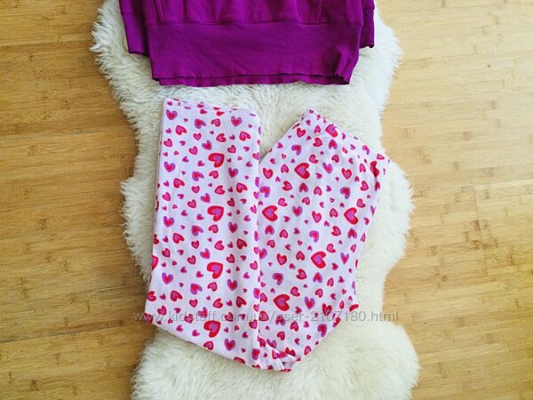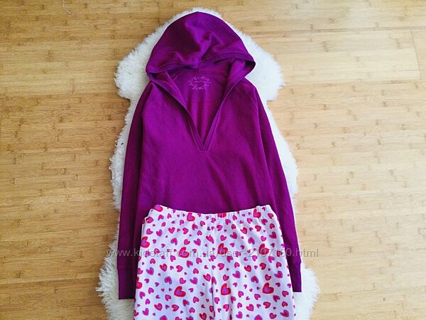 Cherokee (Чероки) Флисовый домашний комплект. зимняя пижама L-XL. однотонная флисовая пушистая сиреневая удлиненная туника с капюшоном на манжетах, закрывает попу. Флисовые штаники с принтом сердечек. состояние идеальное Верх длина 77; подмышки 56; рукав от ворота 72; Низ Длина 96; шаговый 74Другие объявления продавца