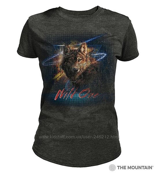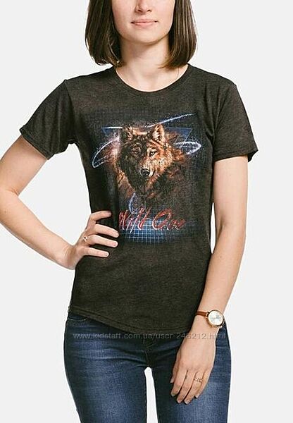 Дымчатая футболка от известного американского бренда The mointain Оригинал из Сша.Футболка в байкерском стиле . C преданным зверем Волчицей , добычецей и охраницей семьи .