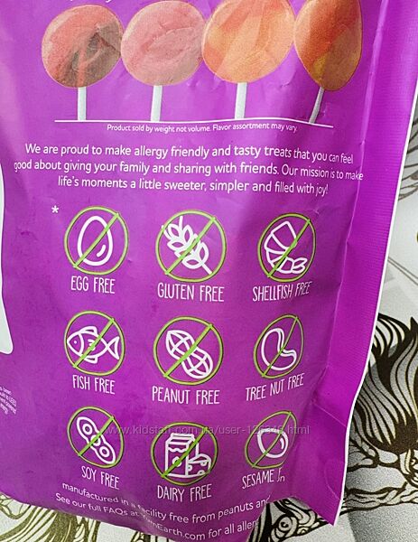 Льодяники від YumEarth можуть вживатися веганами, оскільки не містять продуктів тваринного походження, у тому числі молока та яєць. Це ідеальні ласощі і для алергіків, тому що серед компонентів органічних цукерок немає горіхів, сої, арахісу. Відсутня у списку інгредієнтів даного продукту та кукурудзяний сироп, насичений фруктозою.