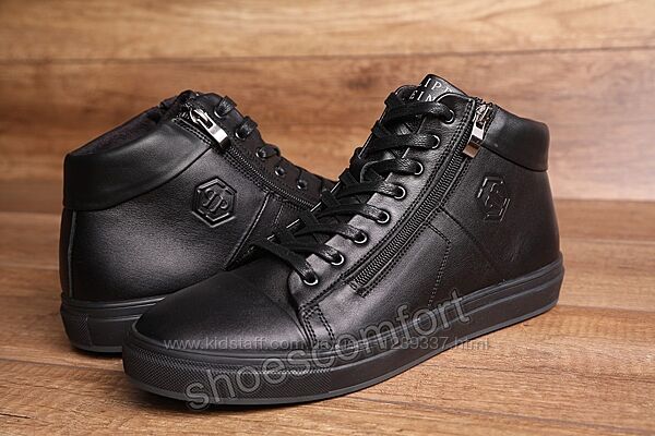 Подробное описание: Мужские зимние ботинки Philipp Plein кожаные черные