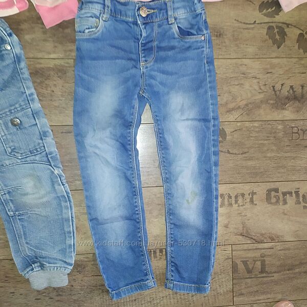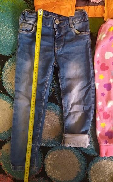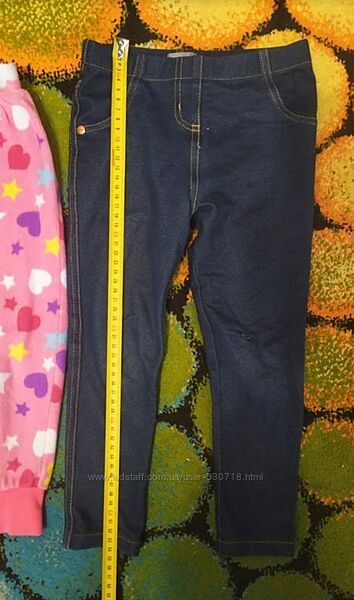 Ціна за все!!! Джинси, штани, на 2-4 роки. Заміри на фото. Джинси на манжетах по бірці 2-3, реально на 2-4 Блакитні джинси - по бірці 3-4, стрейчеві Темно-сині легенси - щільні. Трикотажні лосіни без нюансів.