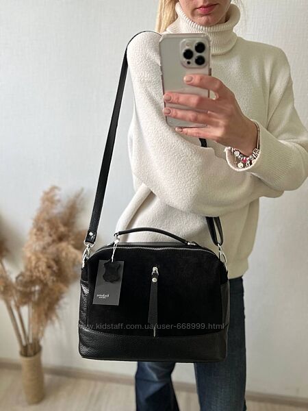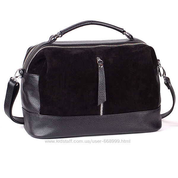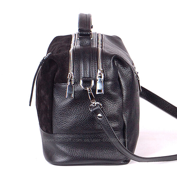 Подробное описание: Компактний саквояж на 2 відділення, натуральна шкіра флотар і чорна замша
