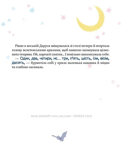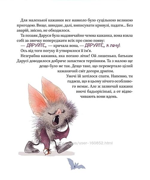 Кажанчики сплять удень, а вночі літають. Проте Даруся — незвичайна кажаночка. Вона трохи незграбна й не хоче спати, поки світить сонечко. Так не буває! Проте Даруся цим не переймається. Вона знає: день — для пригод, а ніч - для фантастичних сновидінь. Удень їй подобається бавитися з друзями, шукати домашнього улюбленця та кататися на велосипеді. А ще святкувати день народження зі справжнісіньким тортом. А як стемніє, вона вдягає тепленьку піжамку та смугасті шкарпетки, у яких дуже приємно спати. Бо ж той, хто солодко спить уночі, засвітла має приголомшливі пригоди.