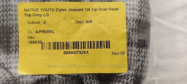 Полувер Native Youth Dylan Jacquard с застежкой-молнией.ПроизводствоNative Youth (Великобритания), завод в Китае, для рынкаСША.