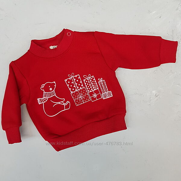 Новорічний теплий костюм на флісі складається зі світшота та штанів.Колір: червоний
