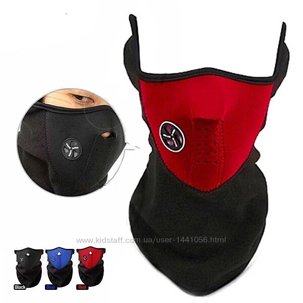 Неопренова маска на флісі (фото 1-3), універсальний розмір, підходить для занять різними видами спорту в холодну пору року, для водіїв скутерів, велосипедистів. Колір червоний, чорний, синій.