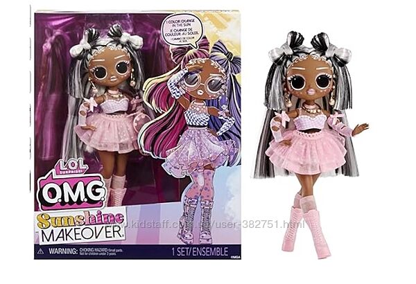 Встречайте новых ярких красавиц O.M.G. серии «Sunshine Makeover». Эти куколки просто обожают отдыхать и загорать на солнышке. Поэтому Вас ждут новые сюрпризы и яркие перевоплощения. Элементы одежды и волос кукол O.M.G. серии Sunshine Makeover меняют цвет при солнечном свете или под ультрафиолетовой лампой. Найдите секретное перевоплощение своей куклы, одежды и аксессуаров. В набор входит: Кукла высотой 27 cm.Стильная одежда.Обувь.Аксессуары.Подставка для куклы, которую можно использовать в качестве стула.Кукла имеет шарнирные руки, что позволит реализовать множество поз для фотосессий и модных показов. Игра с куколкой L.O.L. SURPRISE! развивает в ребенке креативность, воображение и умение играть.