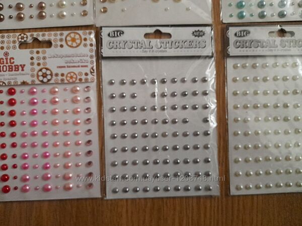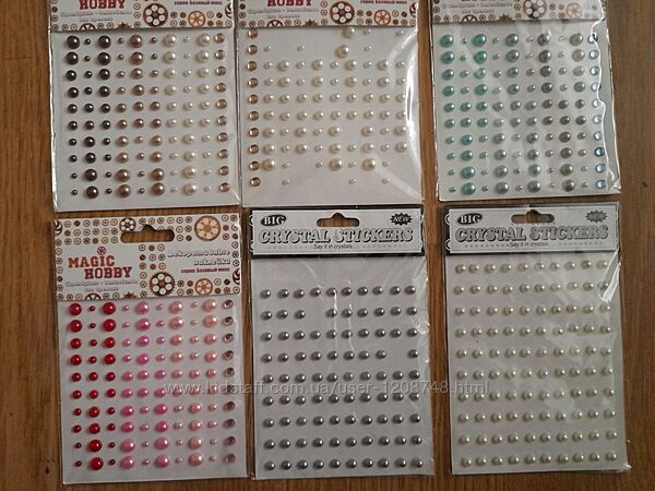 Половинки жемчужин на клеевой основе для скрапбукинга и рукоделия продаю одним лотом т.е. 14 упаковок с полужемчугом с фото 1 + фото 4.Есть новые упаковки, а есть б/у.