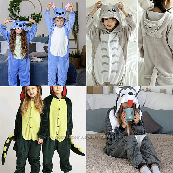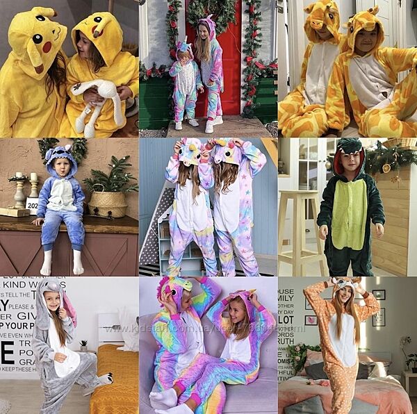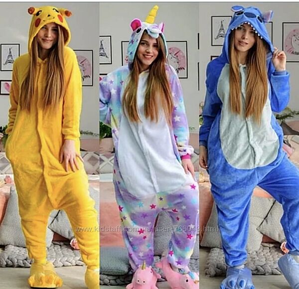 Ціни і залежить від моделі та зросту від 600 до 680 грн.Питайте, що є на ваш зріст Стіч,Пікачу,Хаскі,Корова,Жираф,Лемур,Кролик,Дракон,Зебра,Единоріжки в ассортименті.Дуже мякі та комфортні.Чудовий подарунок для дорослих та дітей. .В них зручно ходити по дому,спати.Йти на вечірки,на вулицю,святкувати Позаду є замочок.