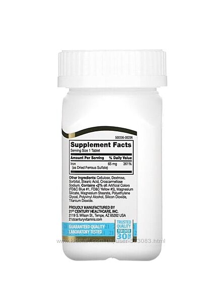 21 Century железо 65 мг - 120 таблетокСрок годности 2025
