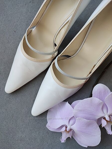 Шикарні шкіряні туфлі на підборах з гострим носиком Furla Capretto Bianca оригіналБренд Furla