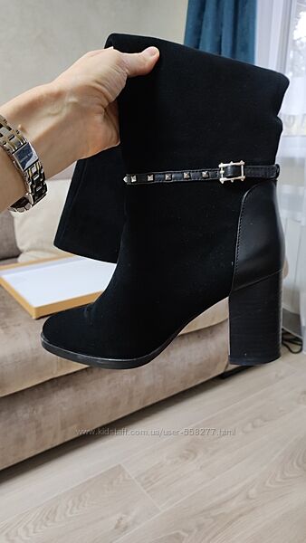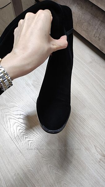 Теплі зимові чоботи натуральна замша. Стан ідеальний. Невеличкий дефект- більосий слід на підошві від солі. . А так все ідеально. Розмір 40, повномірні, 26.5. Повнота середня. Колодка дуже зручна, каблук стійкий 8 см. Висота халяви 46.5 см. Високі під коліно. Або як ботфорти для когось. Замша м´яка, ніжна всередині натуральне хутро/фліс. Каблук і п´ятка - натуральна шкіра.Другие объявления продавца