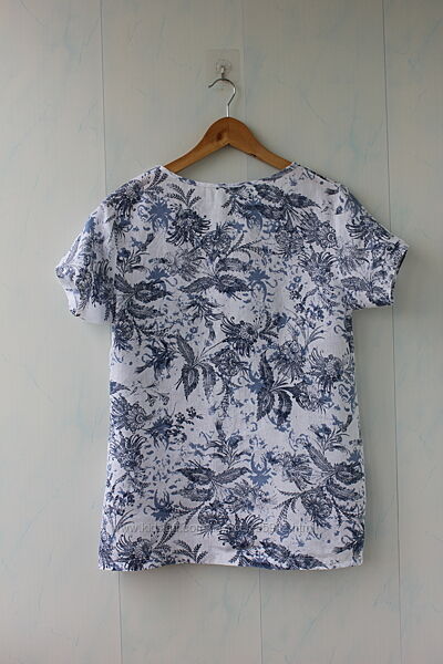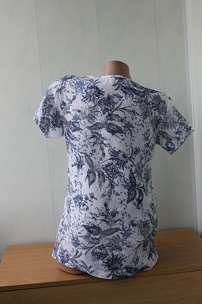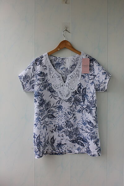 Льняная блуза с цветочным принтом, с кружевом camilla, Италия, 100% ленОчень красивая блуза, 100% лен, кружево из высококачественного хлопка, на бирке размер с, на него и идет.