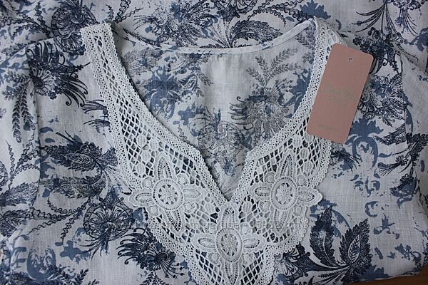 Подробное описание: Льняная блуза с цветочным принтом, с кружевом camilla, италия, лен
