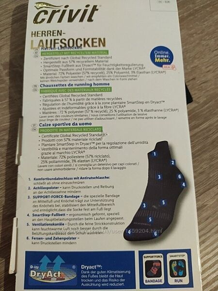 Подробное описание: Термо носки спортивные зональные треккинговые беговые Crivit Германия