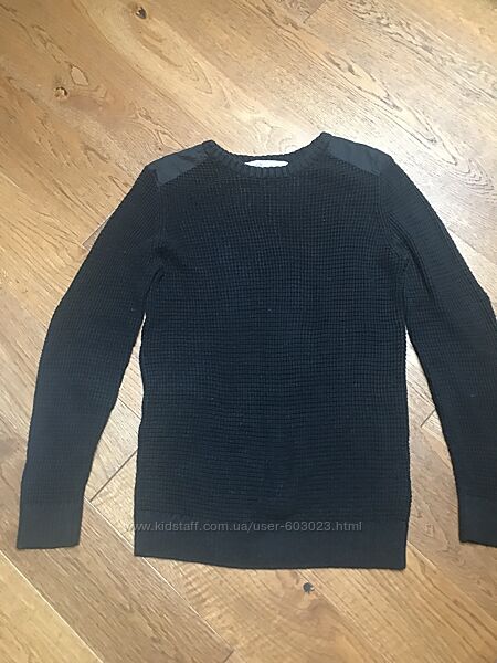 Стильна кофта H&M на 10-12 р, зріст 146-152 см. Стан хороший, без дефектів. Тканина якісна, 100% котон, декор на ліктях і плечах. Заміри: довжина кофти 59 см довжина рукава 57 см ширина плечей 36 см ширина під руками 41 см.