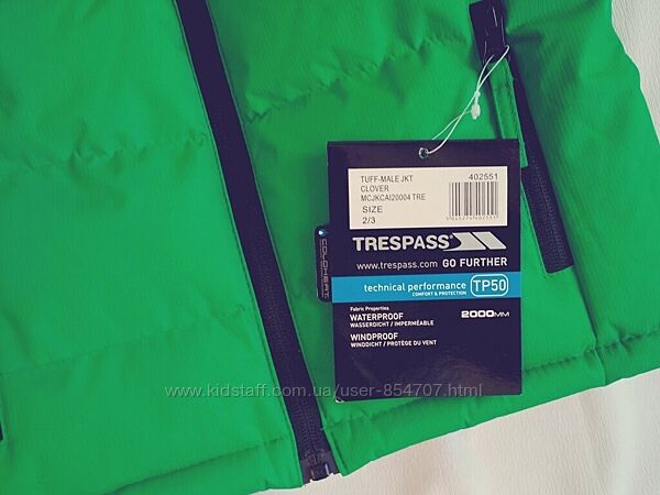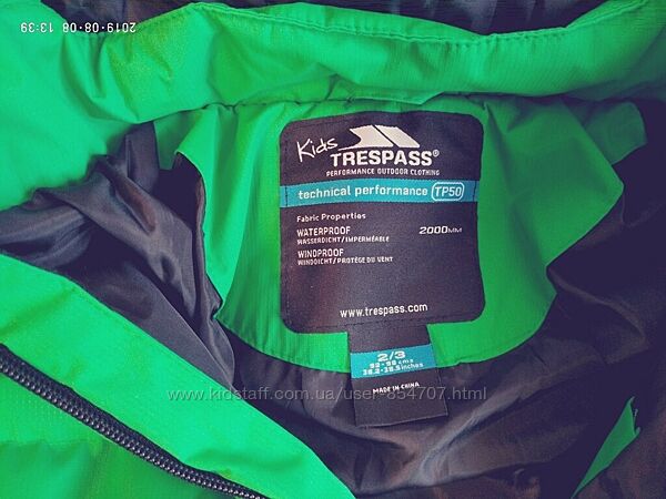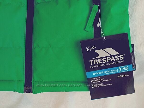 Куртка детская зимняя Trespass (Размер 92-98см (2-3 года))Цвет зелёный. Ткань изготовлена по технологии Coloheat – теплоизоляционная, легкая, прочная. Капюшон съёмный. Манжета на резинке. Внизу утяжка на шнурке. Три кармана снаружи, один накладной внутренний.