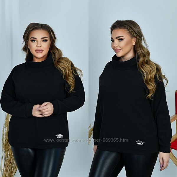Неймовірно стильний, теплий светр із дуже якісного щільного трикотажу «ангора». Горловина оброблена високою подвійною стійкою. Лінія плеча спущена. Рукави та низ светра на манжетах. Декорований нашивкою. Застібок, кишень немає.