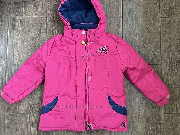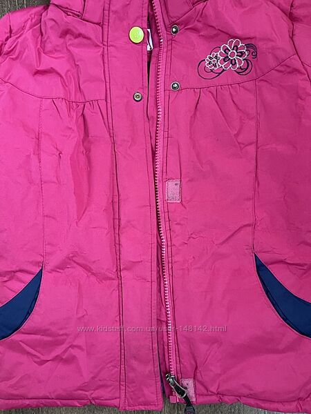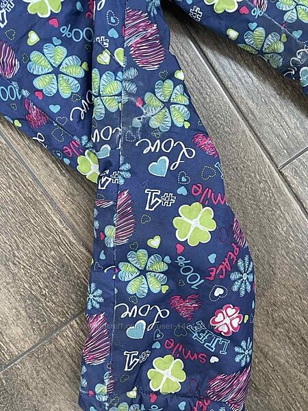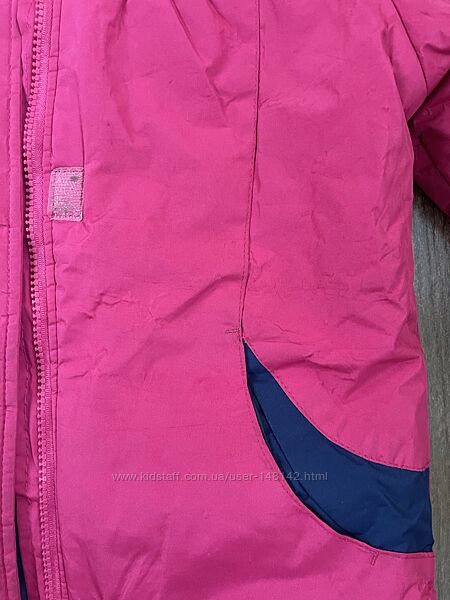 Куртка : Капюшон на флисовой подкладке , не отстегивается , ширина манжет на рукавах регулируется, застежка-молния плюс клапан на кнопках, изнутри куртка и капюшон из флиса, рукава куртки на резинке + липучки. Нет одной кнопки, потертостей нет но после стирки отошла немного ткань кое-где, на фото видно!