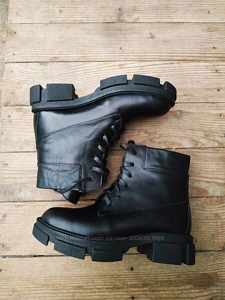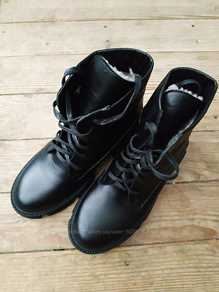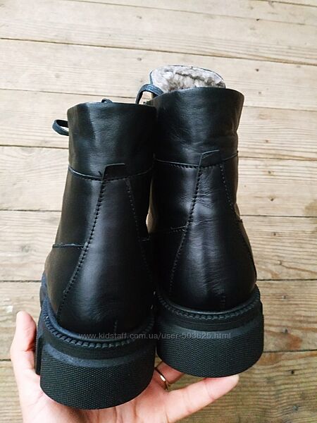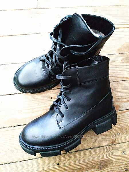 Стильні зимові черевики з натуральної шкіри. Середина утеплена натуральним хутром. Шкіра класної якості, взуття гарно пошите і дуже стильно виглядає на нозі.