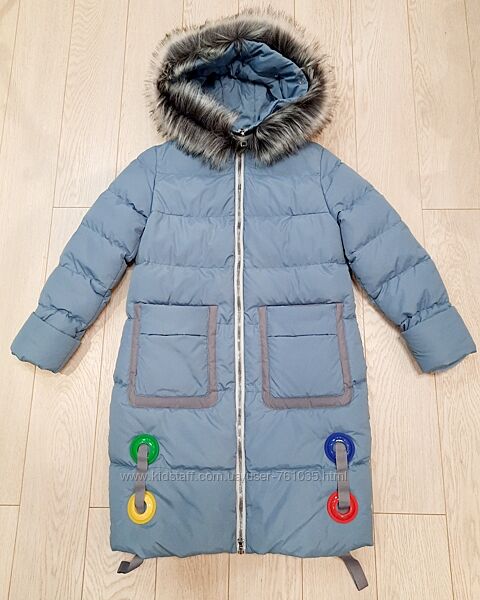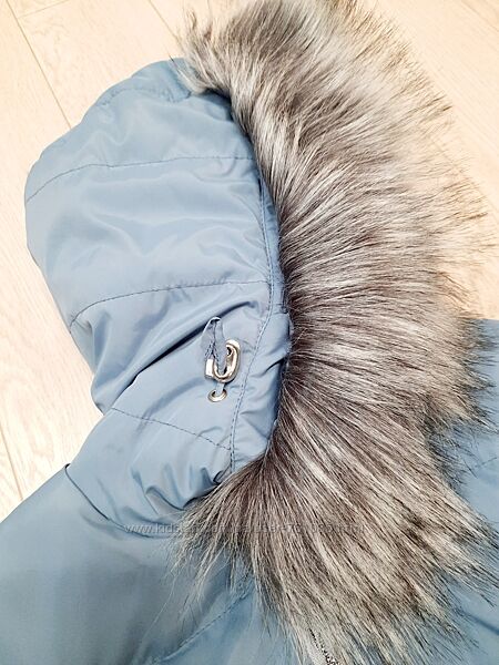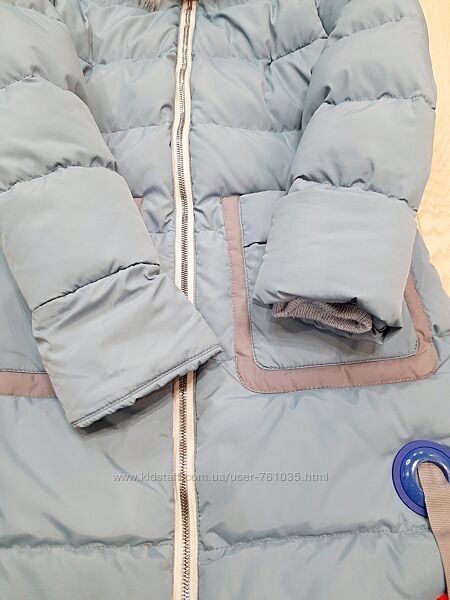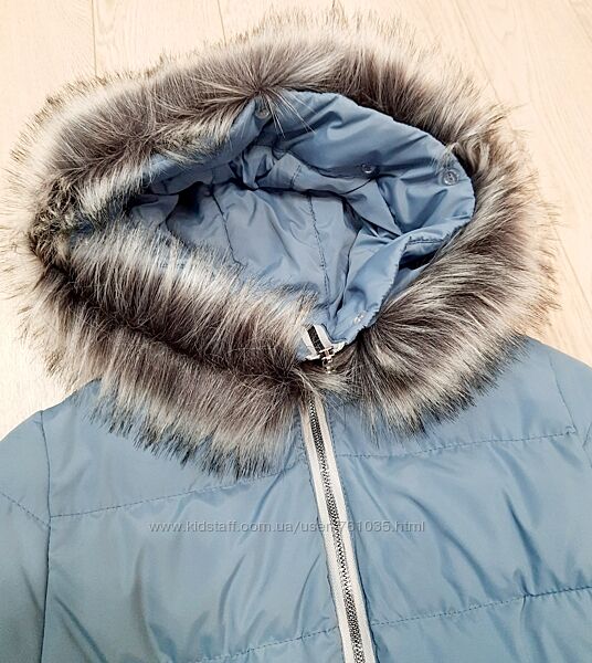 Удлиненный зимний пуховик NUI VERY. На рос 140-146+Большой капюшон с массивным мехом. Эко - мех отстегивается. Капюшон утягивается.