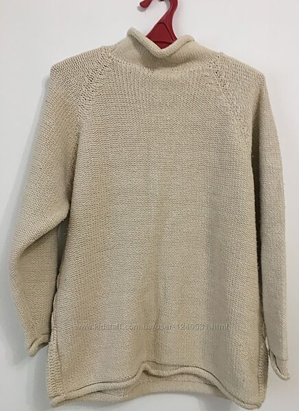 Свитер крупной вязки из толстой пряжи, связан спицами, ручная работа,акцент на хрупкости и утонченности фигуры.Он идеально подходит стройным девушкам, особенно высокого роста.Размет 44-48 по груди 52см,длина свитра-64см,длина рукава-63см.