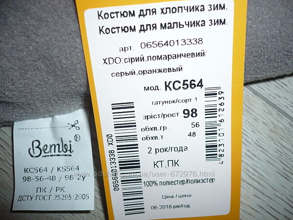 На фото 7 видно, що номер моделі ( кс564) збігається на паперовій бірці та на бірці, що пришита до комбезу.
