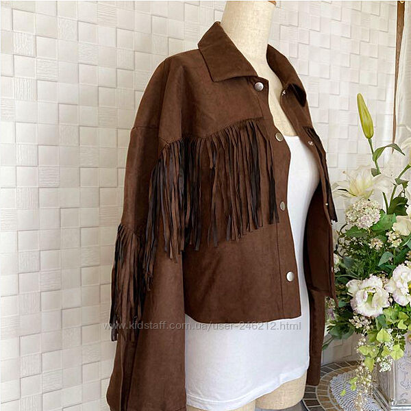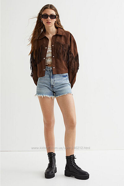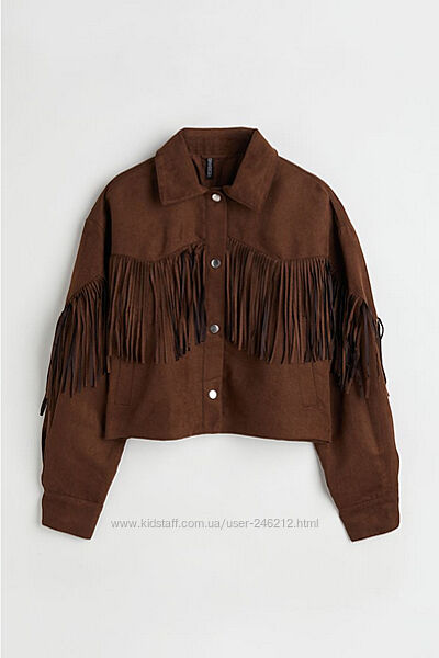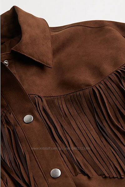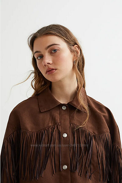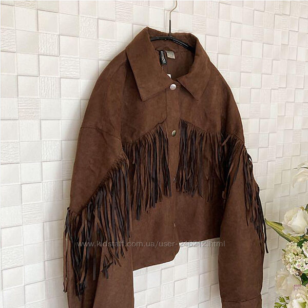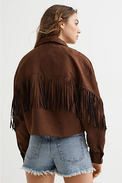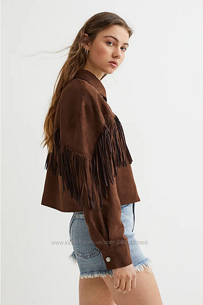 Крута замшева куртка H&M у ковбойському стилі або у стилі бохо.Коротка куртка з м´якої штучної замші з коміром, кнопками спереду та діагональними прорізними кишенями.