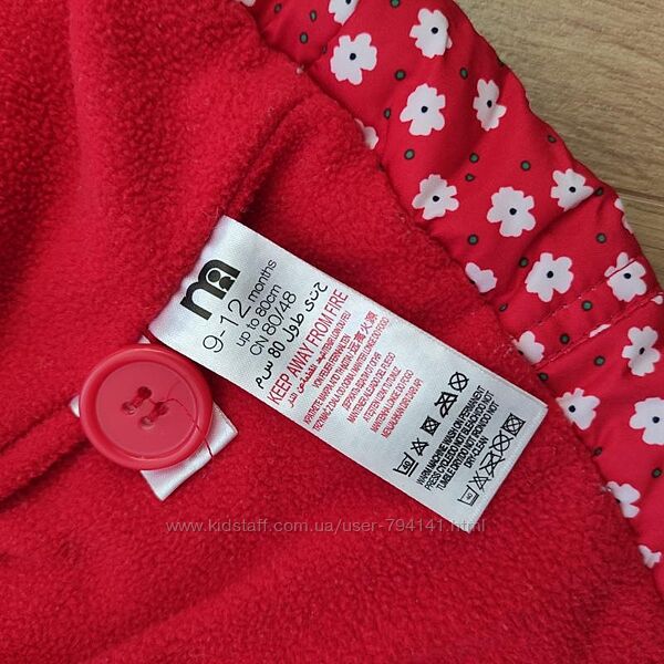 Червона курточка аід Mothecare- розмір вказано 9-12 мес, рост 80 см.Стан нової речі- жодних слідів носіння немає. Відповім на усі запитання.