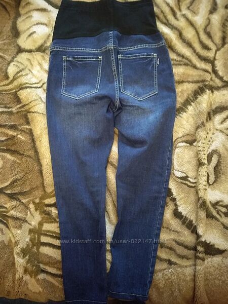 Штани з джинсової тканини з широким трикотажним поясом для вагітних RELUCKY, колір синійКомфортні джинси завужені до низу з високим трикотажним поясом, який повністю закриває і підтримує живіт.